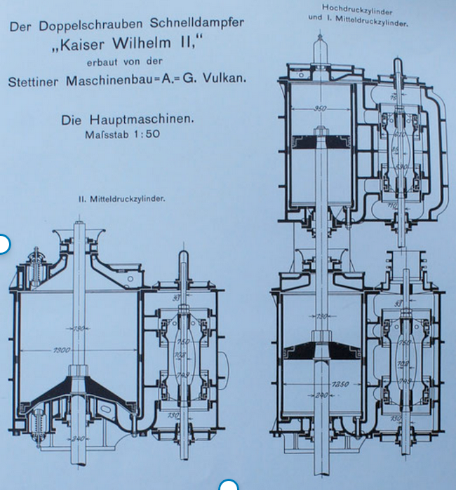 Abbildung 5: Hauptmaschine der der Kaiser Wilhelm II, HD- und MD-