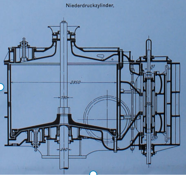 Abbildung 6: Hauptmaschine der der Kaiser Wilhelm II, ND-Zylinder (Foto Dr. Hochhaus aus [3])
