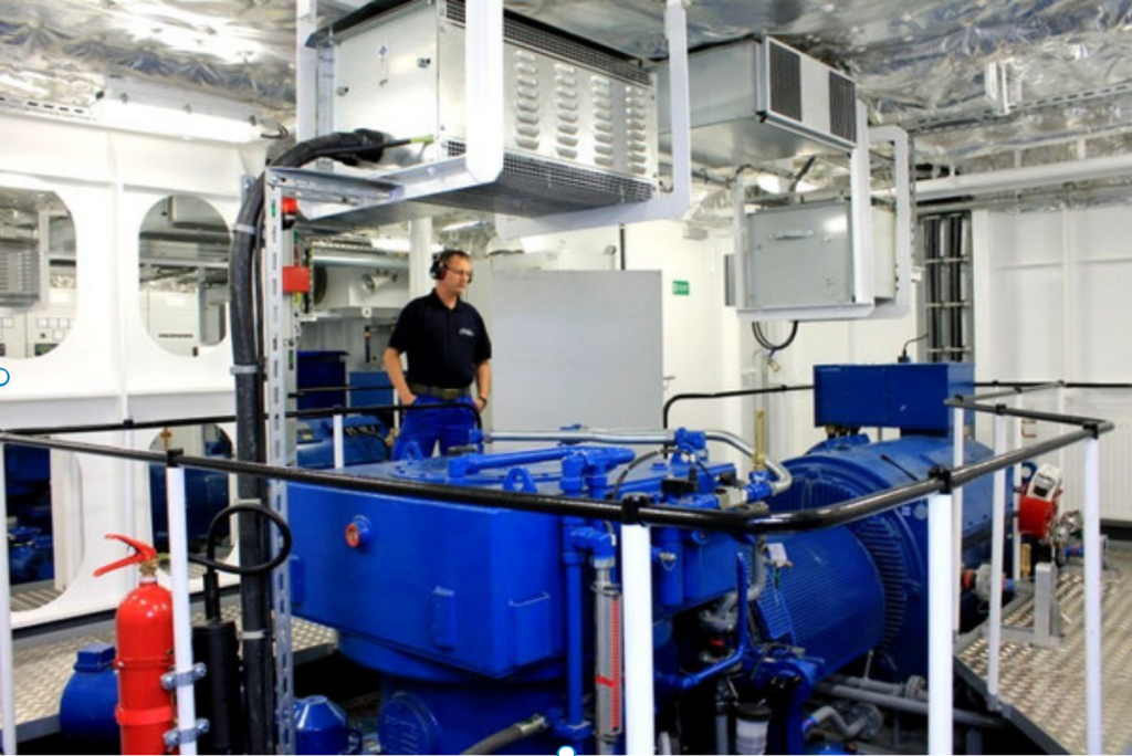 entsprechenden Sicherheits- und Steuerungselementen sowie dem Entlüftungsmast. Es wurde von Wärtsilä entwickelt ebenso wie das als „Cold Recovery“ bezeichnete patentierte System zur Verdampfung des LNGs. In der Klimaanlage wird diese Verdampfungswärme zur Kälteversorgung genutzt, wodurch der Strombedarf der Kälteverdichter eingespart wird.