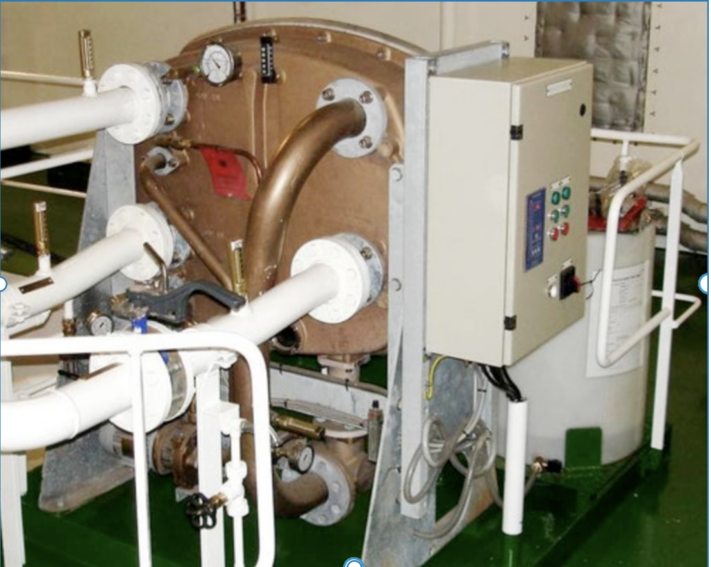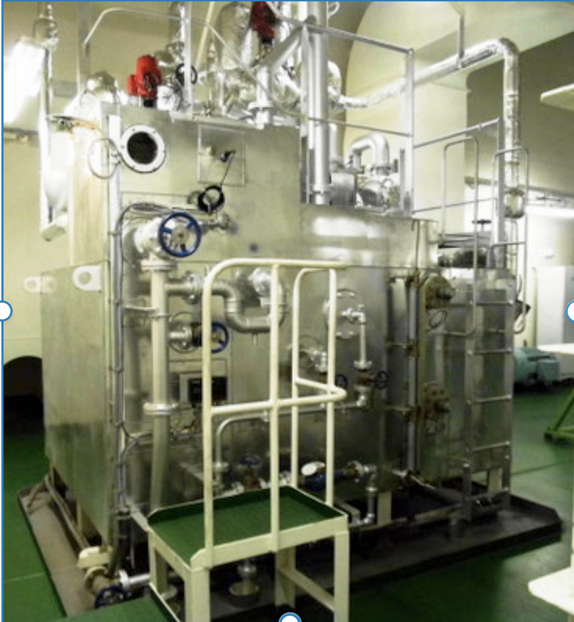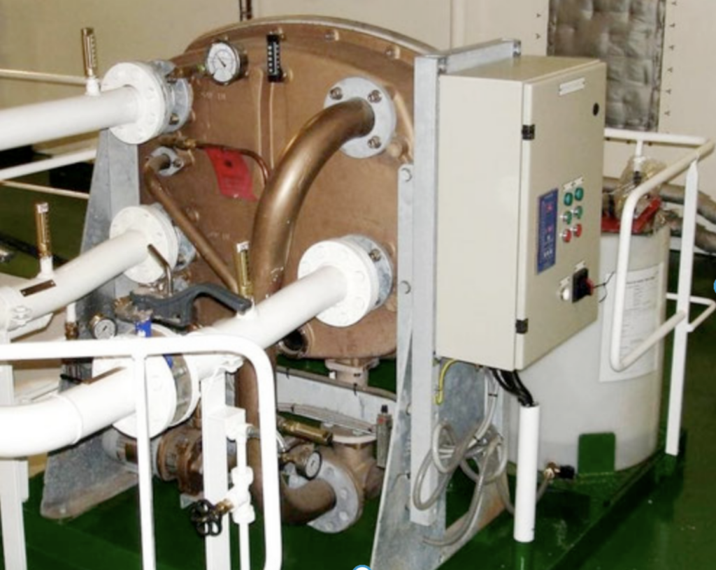 Mit der einfachen und kostengünstigen Frischwassererzeugung aus Seewasser, die durch Unterdruckverdampfung (Verdampfer Abb. 18) mit Abwärmebeheizung erfolgt, wurden die Frachtschiffe unabhängiger von den Häfen. Im Trinkwassersystem erfolgt die Aufbereitung des Frischwassers zu Trinkwasser. Der Reeder spart dadurch die Kosten für das Bunkern von Trinkwasser, auf dem Schiff wird weniger Platz benötigt und ein geringeres Gewicht erreicht. Das ursprünglich zweite, mit Seewasser betriebene und durch starke Korrosionen sehr störanfällige, System für die WC-Spülung wurde überflüssig. Auf heutigen Schiffen befindet sich daher nur noch ein Frischwassersystem für Trink- und Brauchwasser. Zusätzliche Rohrleitungen, Pumpen, Armaturen und Vorratstanks werden eingespart. Auf Kreuzfahrtschiffen mit hohem Trinkwasserbedarf werden mehrstufige Verdampfer (Abb. 19) und außerdem Umkehrosmose-Anlagen (Abb. 20) eingesetzt.