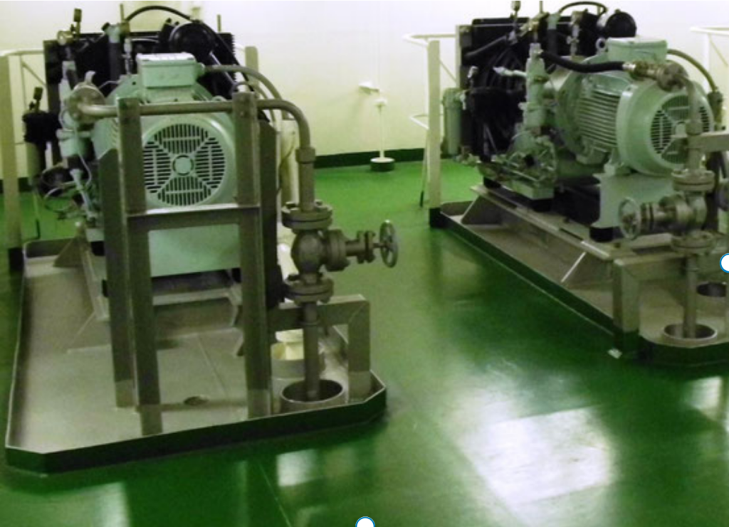 Zum Anlassen der Schiffsdieselmotoren dient die von den Anlassluftkompressoren (Abb. 8) auf 30 bar komprimierte Anlassluft, die in den Anlassluftflaschen gespeichert wird. Über die vom Anlasssteuerstern jeweils geöffneten Luftanlassventile strömt die Druckluft in die entsprechenden Zylinder, dreht den Motor und nach der Kraftstoffzugabe startet der Motor.